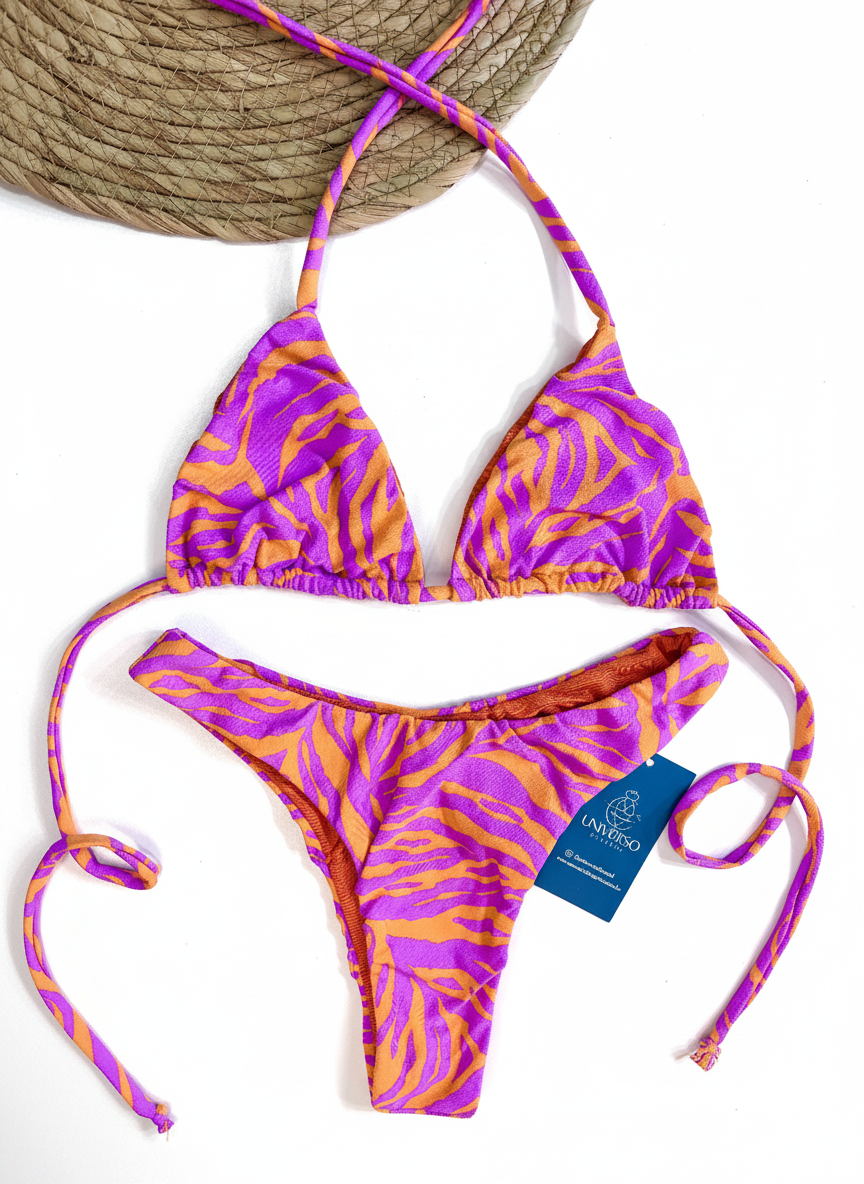Antes de usar seu biquíni, realize uma primeira lavagem completa. Use apenas sabão neutro e água corrente para que o tecido libere qualquer excesso de pigmento e prepare a cor para a fixação.
