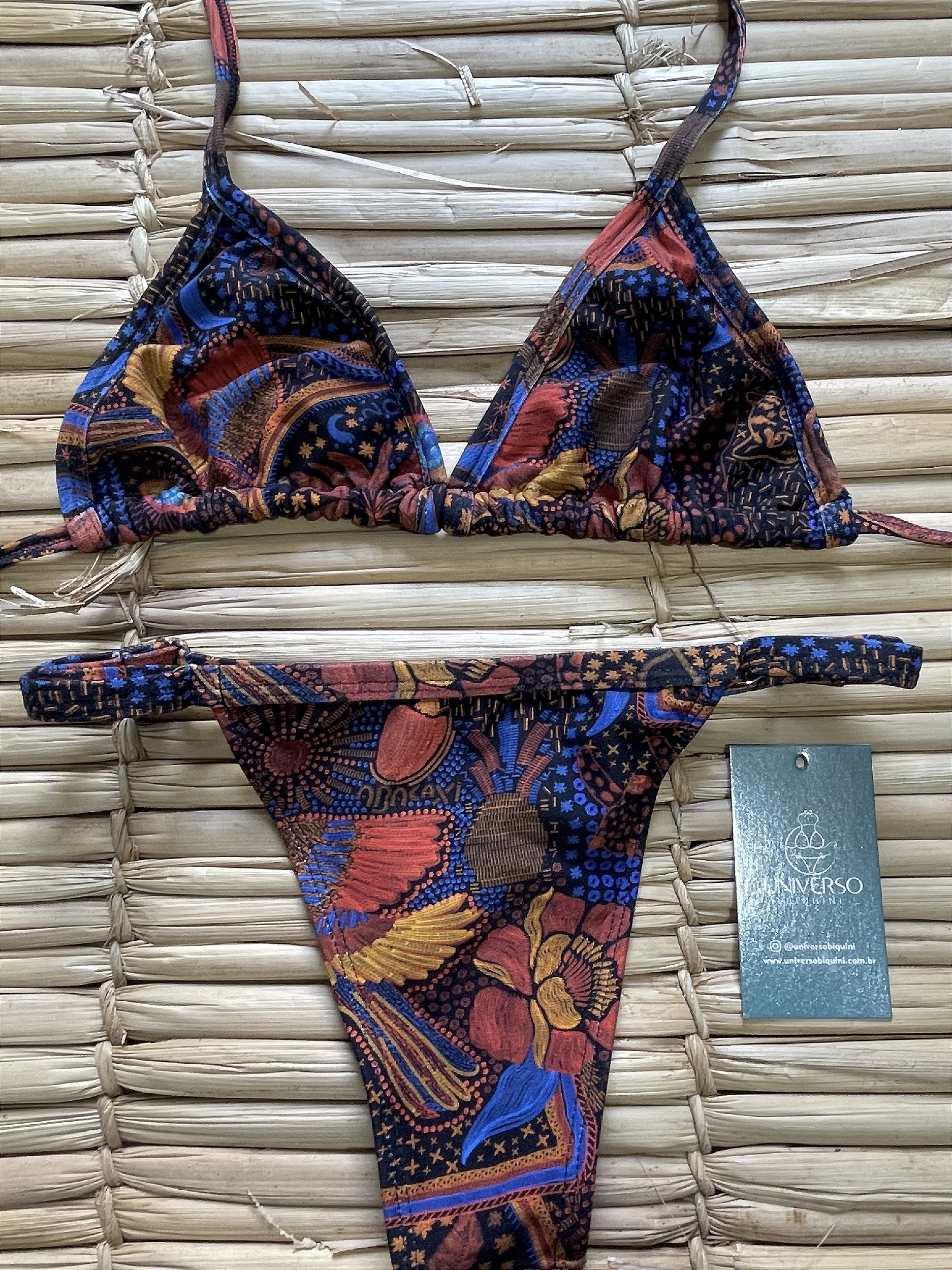 O Biquíni Farm Ancestral traz estampa étnica vibrante que mistura arte ancestral com vibe moderna. Top triangular com amarração e calcinha fio dental que valorizam suas curvas. Tecido de qualidade com proteção UV. Pra você que ama expressar autenticidade na praia!